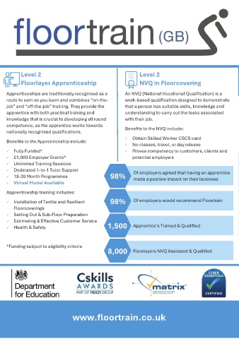 ✓ Dedicated 1-to-1 Tutor Support Of employers agreed that having an apprentice definitely recommend Floortrain to other fitters